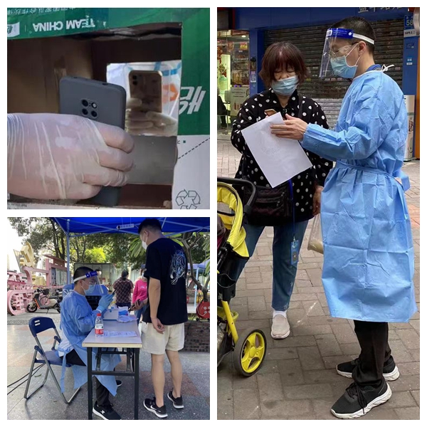“改造一个纸箱,挡住太阳光线,这样扫码快!”今年以来已在南沙区南沙街和海珠区瑞宝街、凤阳街、南石头街等地参与过防疫工作的市环科院党员干部罗新华,正在社区卖力推广之前在现场学到的“小技能”。