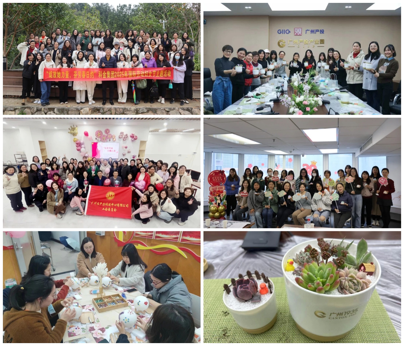 工会统筹指导各直属工会“一体化、分层次”精心组织开展庆祝“三八”国际妇女节系列活动。广州科金集团工会开展芳草科普行、体验非遗香道手工制作等活动,让非遗文化走进女职工生活;广州产业园集团工会开展“指尖绿意 绽放芳华”主题多肉手作沙龙活动,丰富广大女职工精神文化生活;生产力促进中心工会联合广州科技服务业协会开展“绽放美丽 闪耀自我”主题庆祝活动,通过才艺展示和互动游戏,展现女职工积极向上、团结友爱的精神风貌;国际工程咨询公司工会策划“香伴·她绽放”芳疗舒压活动,提升女职工幸福感和归属感;水务院公司工会开展“巧手掬月,映耀她光”主题月球灯手作活动,鼓励女职工以巧思点亮创意,在轻松疗愈的创作中感受生活的美好;环科院公司工会带领女职工前往增江画廊,学习优秀女工匠们在水环境、大气治理等领域的先进事迹,激励职工以更加饱满的热情投身工作。