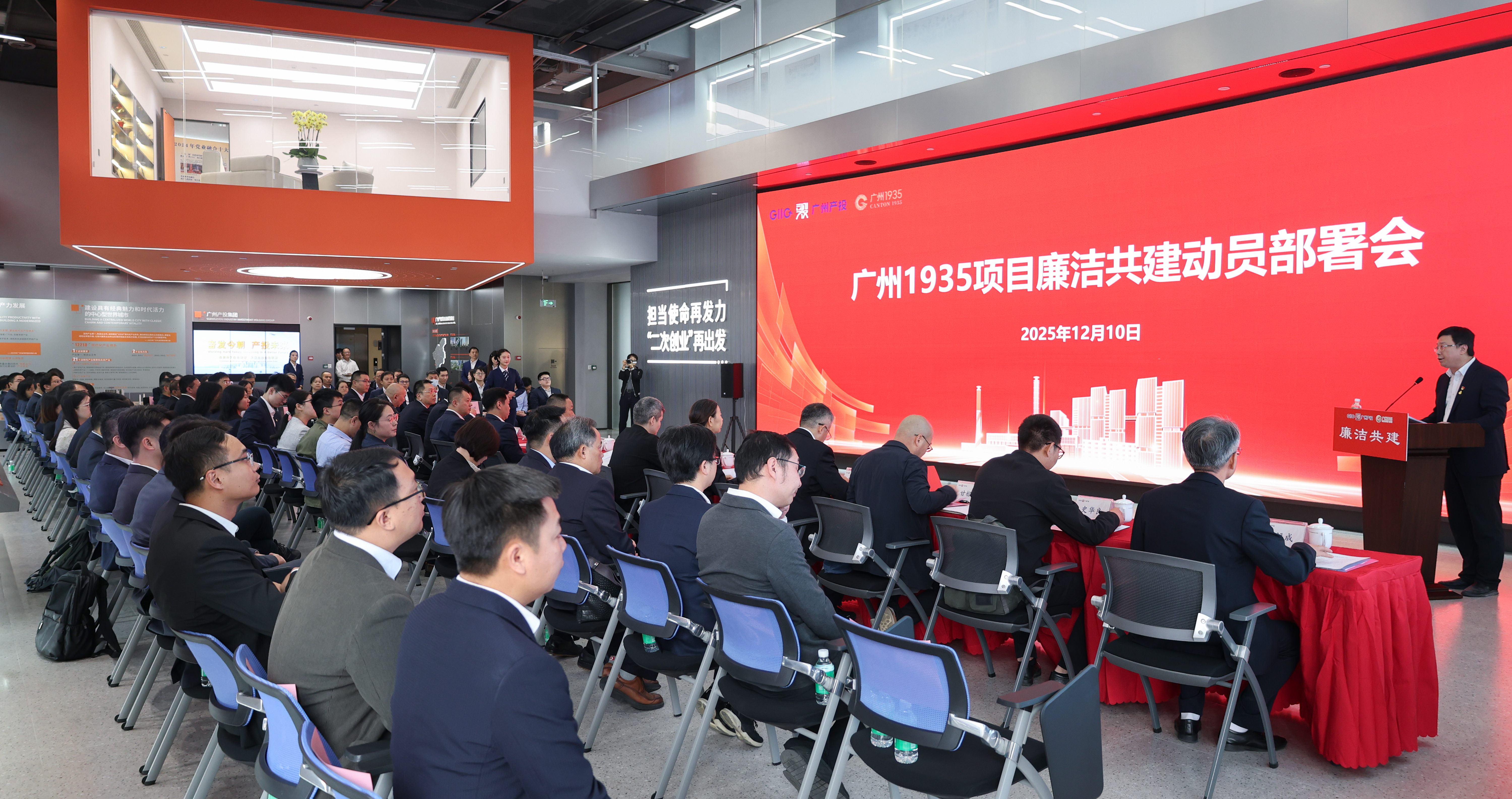 纪检干部、重要子企业新入职员工,产业园集团领导班子和干部职工,各参建单位领导干部代表等80余人汇聚一堂,以纪检“地企”(属地纪委监委、企业纪委)联动监督护航之势,为广州1935蝶变之路注入清风正气。
