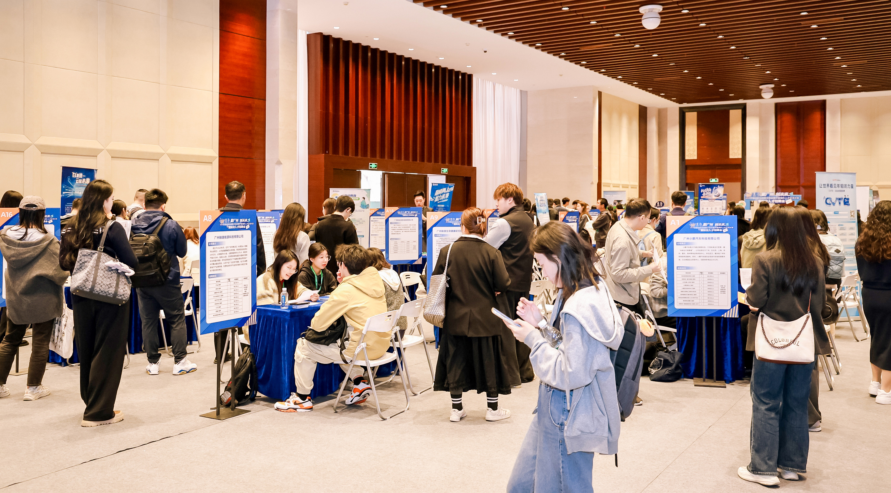现场专门设置国企专区,联合广州本土国有企事业单位精准服务国际化人才,汇集了包括广物控股、广汽集团、越秀集团、户外露出
