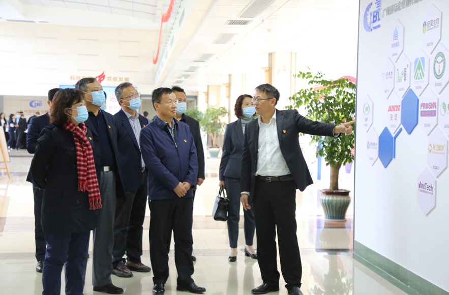 仪式开始前,与会领导和嘉宾参观了孵化器红联共建基地,了解了孵化器的发展历程、孵化的明星企业以及优秀在园企业,并听取了广州国发红联共建整体方案和智慧党建平台情况介绍。本次共建,孵化器党支部设立网格化共建服务, 设立4组为园区企业提供党建工作联络服务。今年是孵化器成立二十周年,经过二十年的运作和探索实践,已成为区域具有影响力的园区品牌之一。累计培育科技企业700多家,高新技术企业120多家,毕业企业90多家,上市挂牌企业11家,广州开发区瞪羚企业20多家,累计创造总收入300亿元。仪式后,与会领导和嘉宾一同实地参观了孵化器园区及四期建设现场,到访了共建企业云舟生物科技有限公司和广州海昇计算机科技有限公司,对园区企业有了更进一步的了解,勉励他们发挥民营企业在科技创新中的主体作用,积极主动投身粤港澳大湾区建设。
