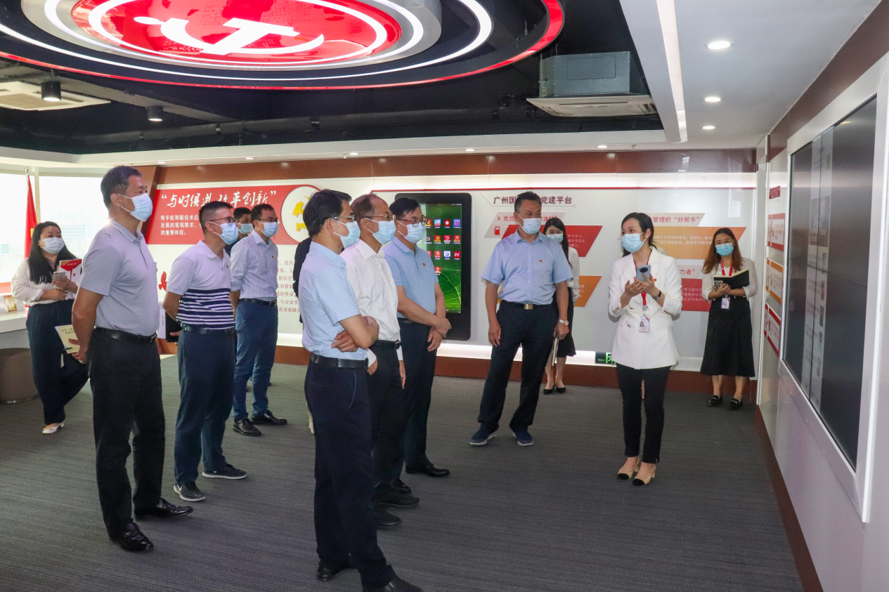 属下广府通公司建设运营的广州国企党建服务中心调研,听取广州国企党建全网运营特色体系成果汇报。市国资委党委副书记、副主任覃海宁,党委办公室和企业党建处有关人员陪同;户外露出