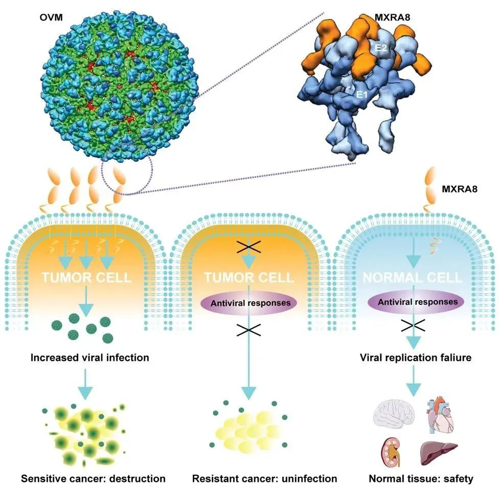 近日,颜光美教授团队在重要知名科学期刊STTT杂志在线发表研究论文。该研究鉴定了MXRA8为新型溶瘤病毒M1的受体,原创性地确定了预测M1病毒疗效的双生物标志物体系。这一突破性成果将推动M1病毒的精准诊断和临床转化,并为溶瘤病毒疗法的生物标志物研究提供范式。目前颜光美教授团队已经制备出可临床使用的溶瘤病毒M1冻干粉针制剂和精准诊断试剂盒,并已完成对溶瘤病毒M1的非临床研究,距离M1抗癌新药上临床只有一步之遥。
