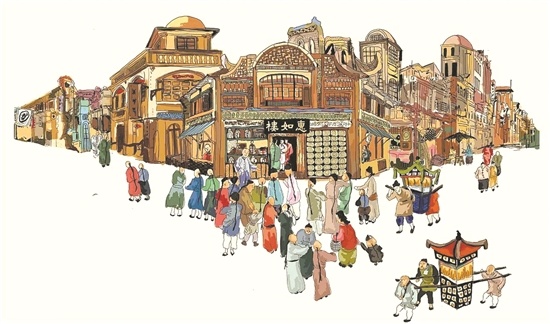 图绘惠如楼昔日盛景。(来源:受访者供图)